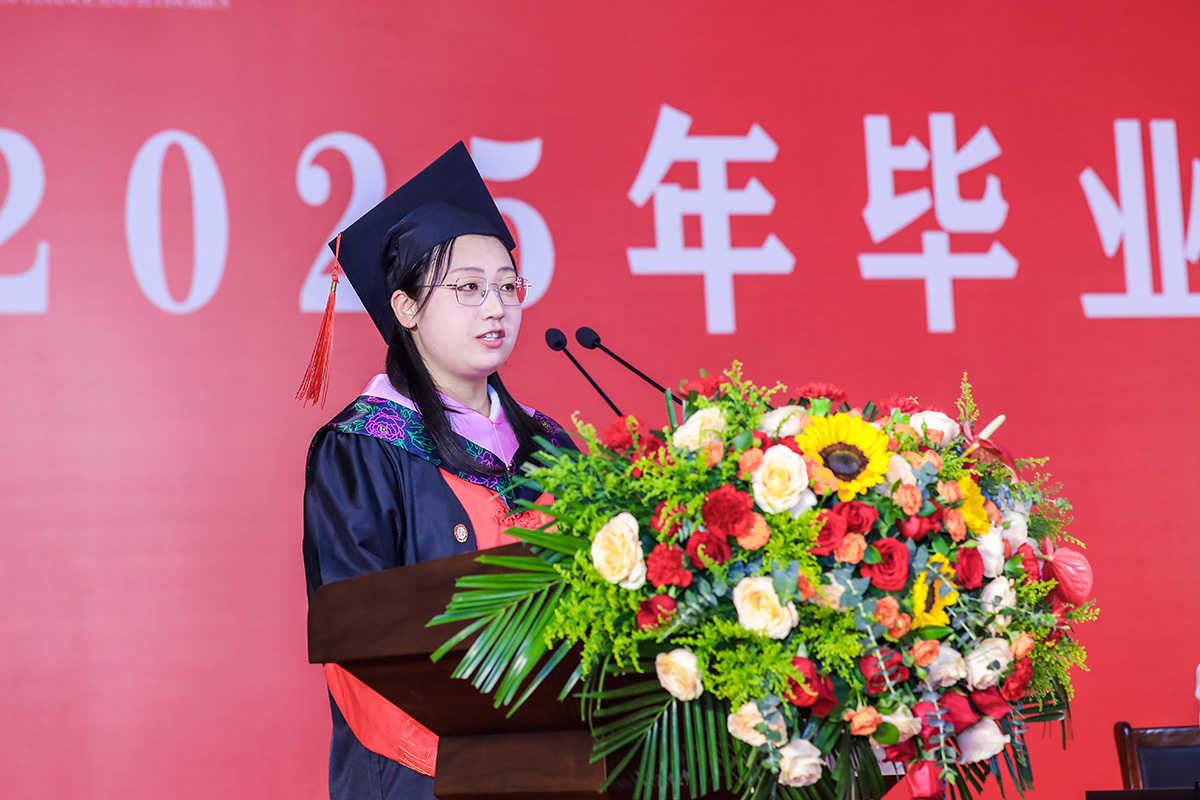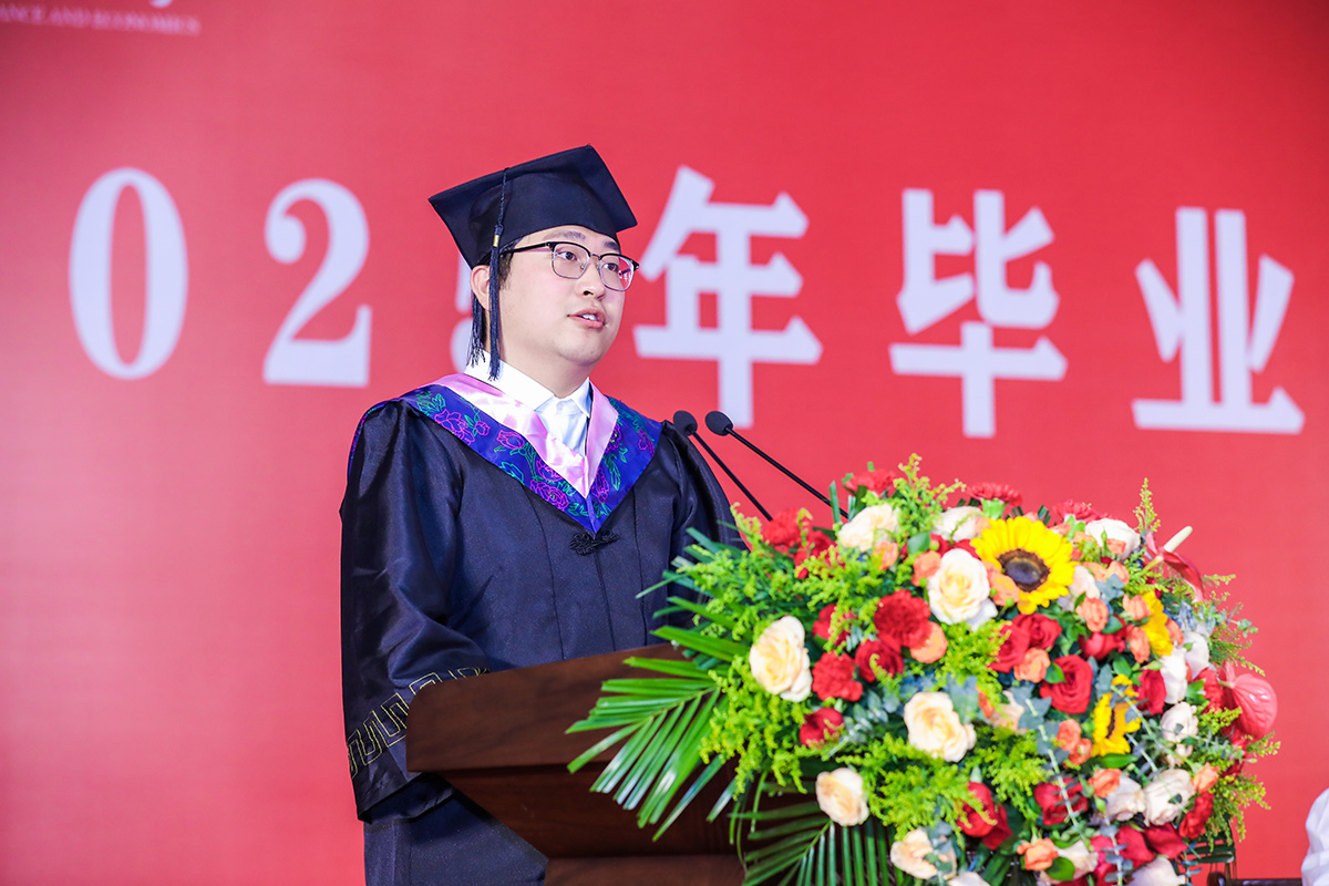 金融学院2021级博士研究生孔晓冉、会计学院2021级财务管理专业本科生方东升,作为毕业生代表先后发言,深情回顾了难忘的大学生活,并表示将以“克明峻德 格物致知”校训精神激励自己开启人生新征程,用所学所知回应时代之问,用拼搏与奋斗书写青春答卷。