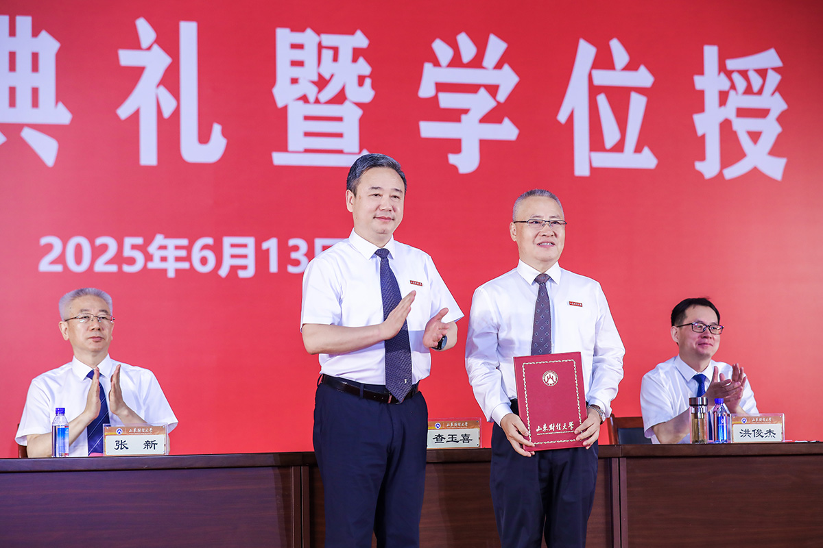 洪俊杰在致辞中简要回顾了过去四年学校高质量发展取得的可喜成绩,如顺利召开第二次党代会,获批理论经济学和审计专业博士学位授权点,启动实施人工智能赋能教育教学行动方案,获得国家级海外引智基地,成立中国经济研究院,法国孔子学院揭牌运行。学校还开展文化寻根活动,通过严谨论证将办学历史起源追溯到1948年的山东省立商业专门学校,著名经济学家顾准确定为创校校长。2025年软科中国大学排名较2024年提升40个位次,荣膺“2024山东最佳社会声誉高校”等等。