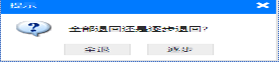 4.勾选要退回的学生,点击【全部退回】,弹窗出‘全退’与‘逐步’选项,‘全退’是直接退到学生,‘逐步’是退回到上一级审批单位