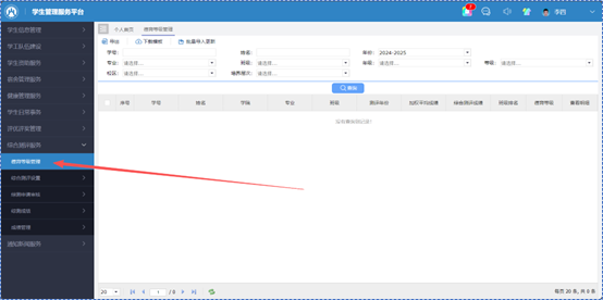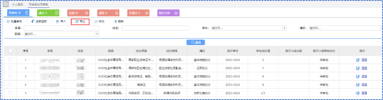 综合测评成绩计算之后,本学年的学生成绩会出现在德育等级管理页面,学院可以设置或导入各学生的德育等级;