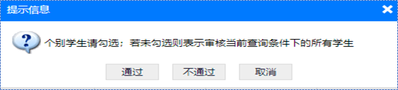 3.勾选要审核的学生,点击【批量审核】,弹窗出‘通过’与‘不通过’的选项