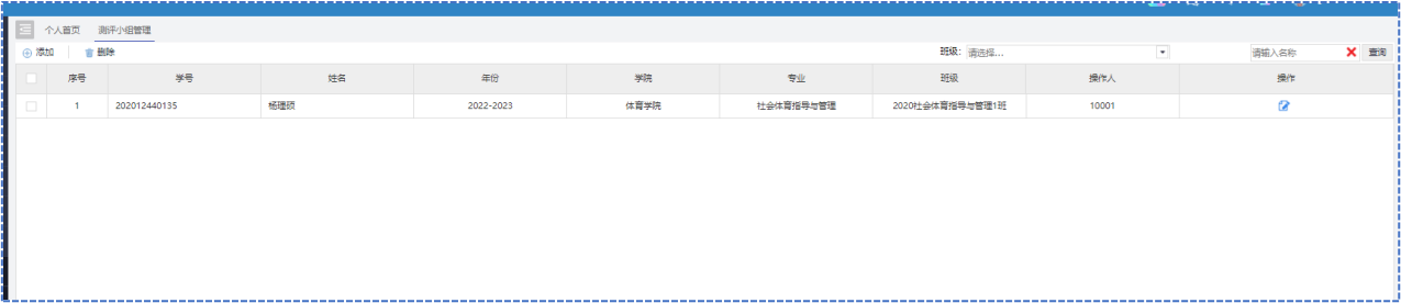 3.输入学生‘学号’点击【确定】,评议小组成员添加成功