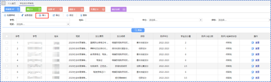 5.【导入】:测评小组有权限导入本班级同学测评加分项