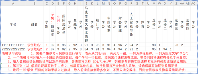 下载的模版如下图所示,根据模版要求整理数据,整理完成的数据在【导入】按键导入。