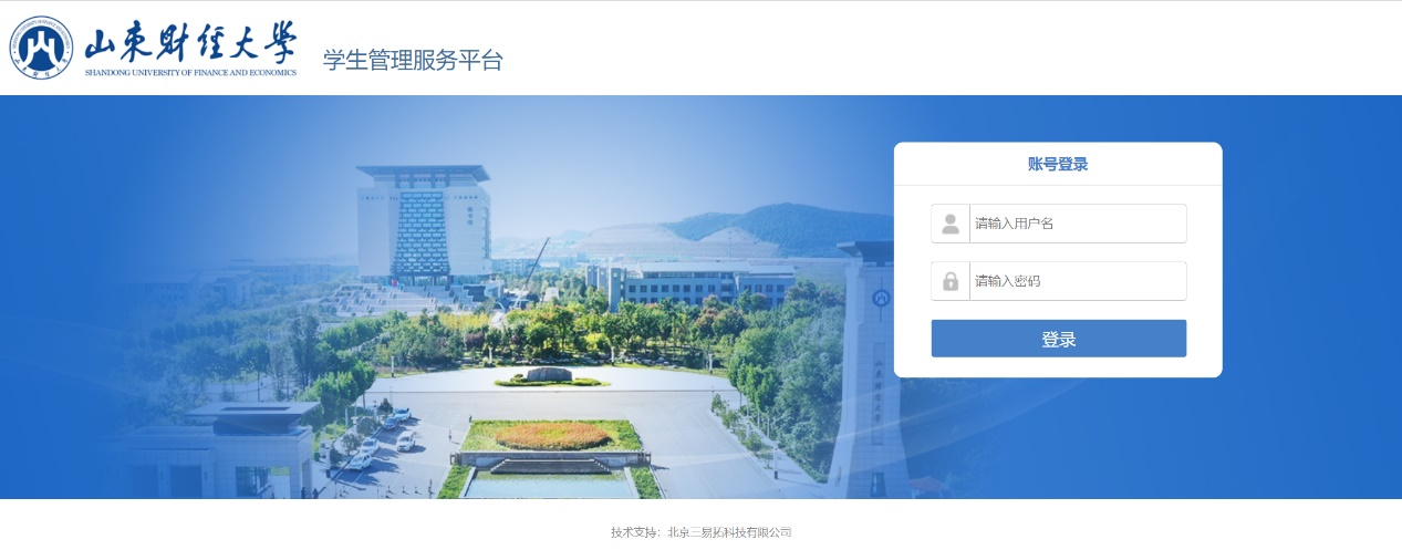 打开浏览器,输入系统入口地址,进入学生工作管理系统登录页。学工访问地址:http://stusys.sdufe.edu.cn/