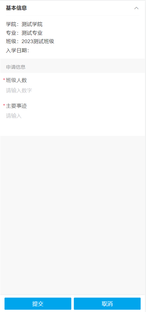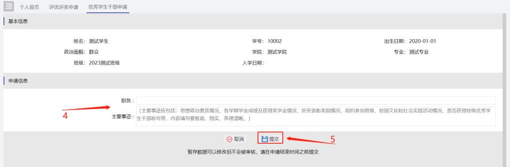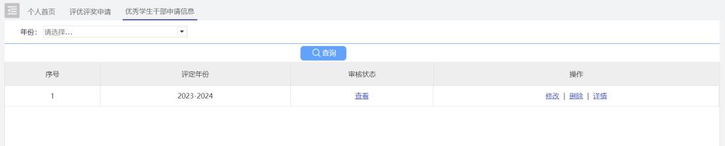学生在规定的申请时间内网上填写评优评奖申请相关信息,提出评优评奖申请,申请提出后可查看申请的处理状况