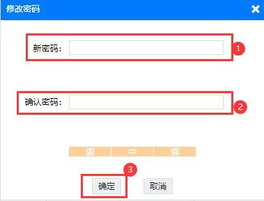 (三)弹窗出‘修改密码’的页面,‘新密码’与‘确认密码’要填写一致,点击【确定】,密码修改成功。