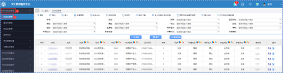 (一)点击左侧导航栏【学生信息管理】,然后点击【在校生管理】,加载出如下页面