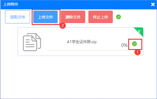 4.系统弹出文件预加载页面,勾选预加载的文件,点击【上传文件】,等待进度条到100%上传完成