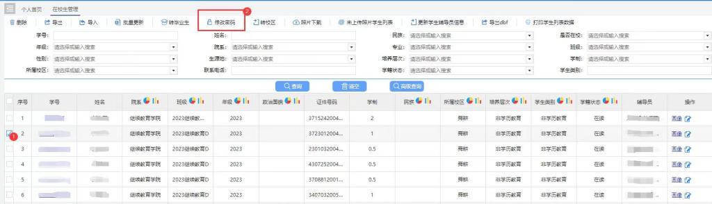 (二)勾选需要修改密码的同学,点击【修改密码】