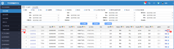 1.点击左侧导航栏【学生信息管理】,然后点击【在校生管理】,加载出如下页面