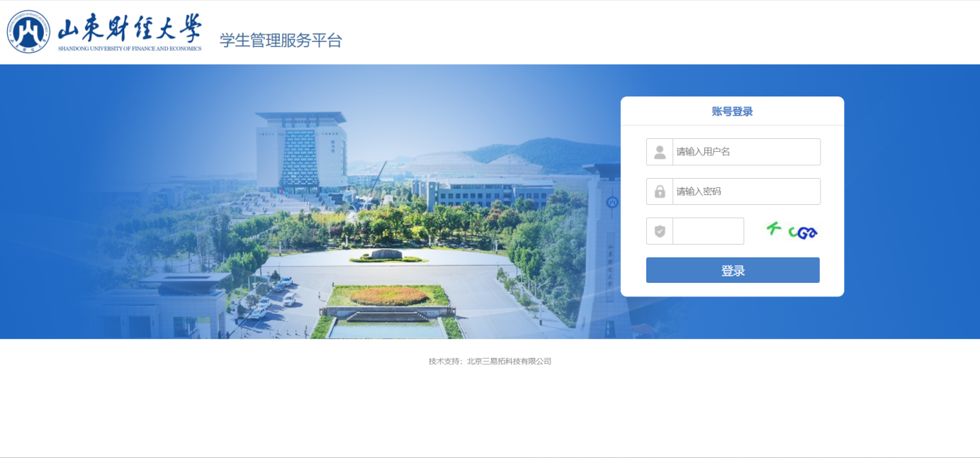 在浏览器中直接输入地址:http://stusys.sdufe.edu.cn/,打开登录页面,如图1所示,输入用户名与密码,通过认证后进入学生工作管理平台。