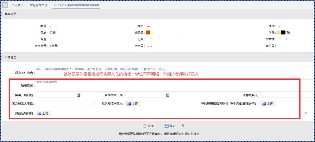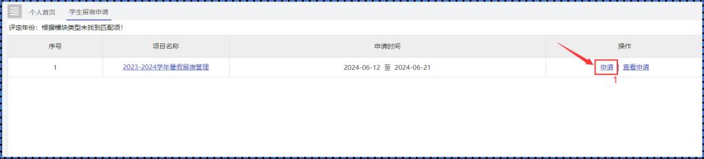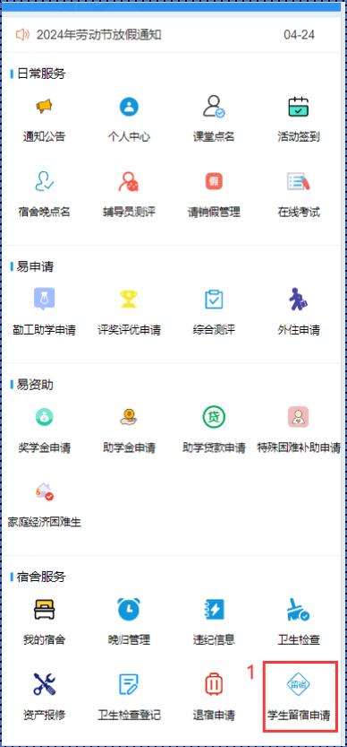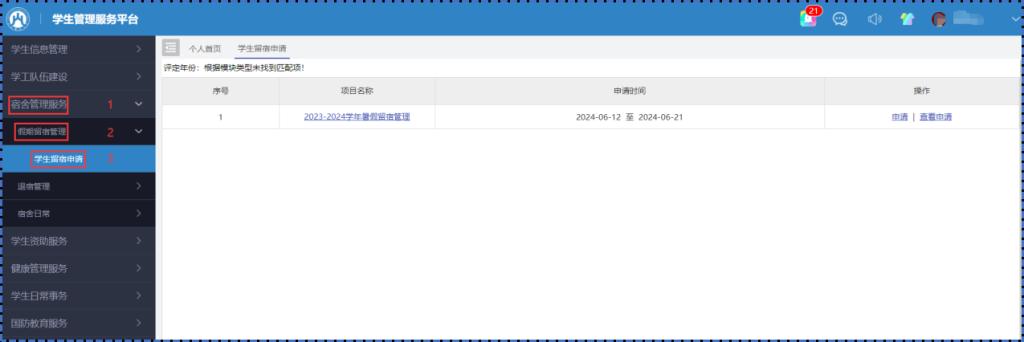 路径:宿舍管理服务-假期留宿管理-学生留宿申请
