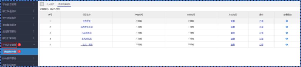 (三)‘优秀学生干部’、‘先进班集体’等的审批与上面‘优秀学生’流程一致,此处不做赘述
